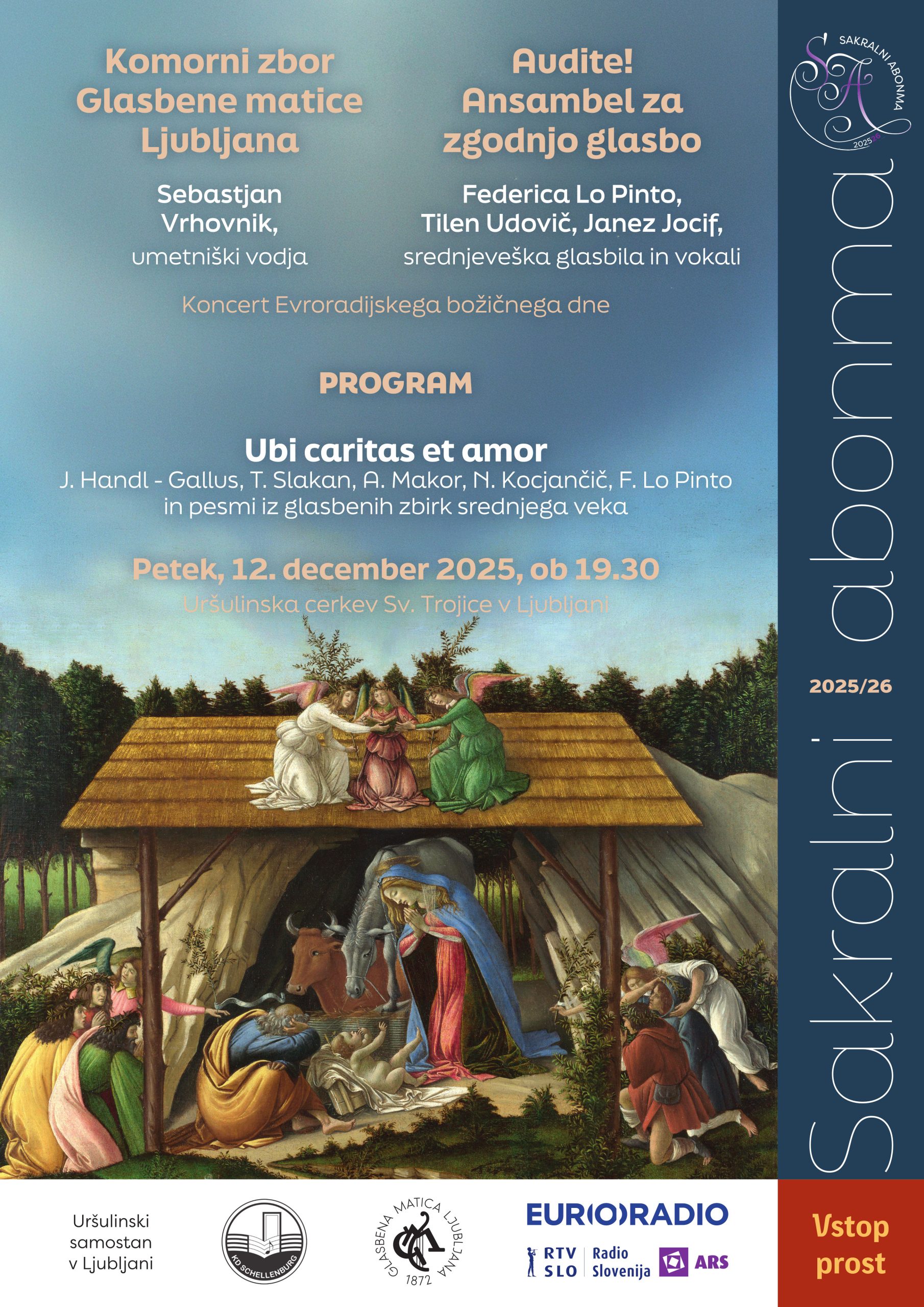 Koncert bo v petek, 12. decembra 2025, ob 19.30. uri v uršulinski cerkvi Sv. Trojice v Ljubljani.